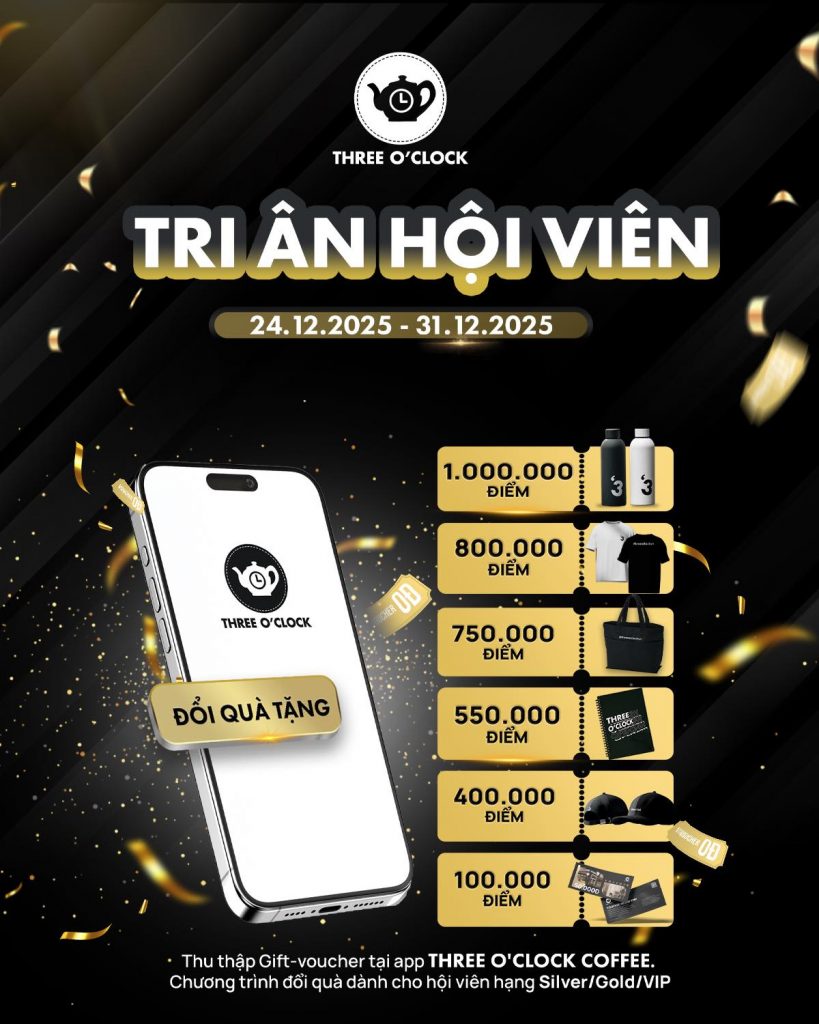 Chuyến tàu phép màu chở theo món quà Giáng Sinh lung linh dành riêng cho các cú đêm nhà THREE đã cập bến rồi nè! Từ ngày 16/12 đến 31/12/2025, với mỗi hoá đơn thanh toán từ 100.000₫ tại THREE O’CLOCK, 3’ers sẽ nhận được 01 Tem Giáng Sinh. Khi...