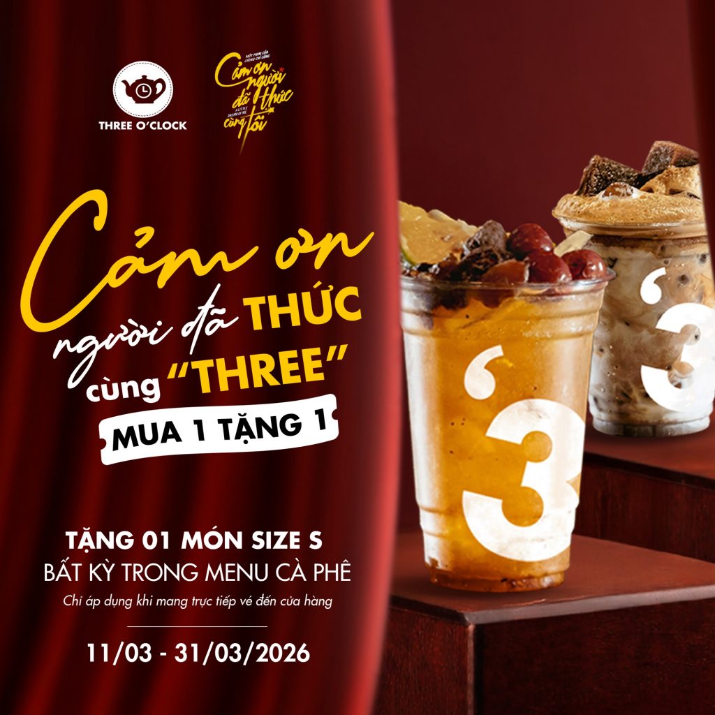 ĐỔI VÉ XEM PHIM – NHẬN DEAL MUA 1 TẶNG 1 🎬 “Cảm Ơn Người Đã Thức Cùng Tôi” đang được công chiếu tại rạp với nhiều nội dung đáng xem. THREE O CLOCK gửi đến Three Holic một ưu đãi nhỏ sau giờ xem phim! Đổi vé xem phim...
