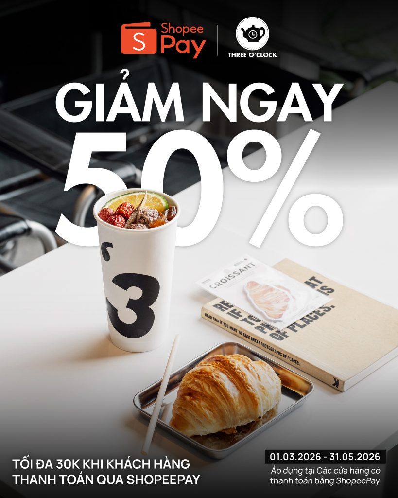 [THREE O’CLOCK x SHOPEEPAY] – ĐẾN THREE HÔM NAY, GIẢM NGAY NỬA GIÁ