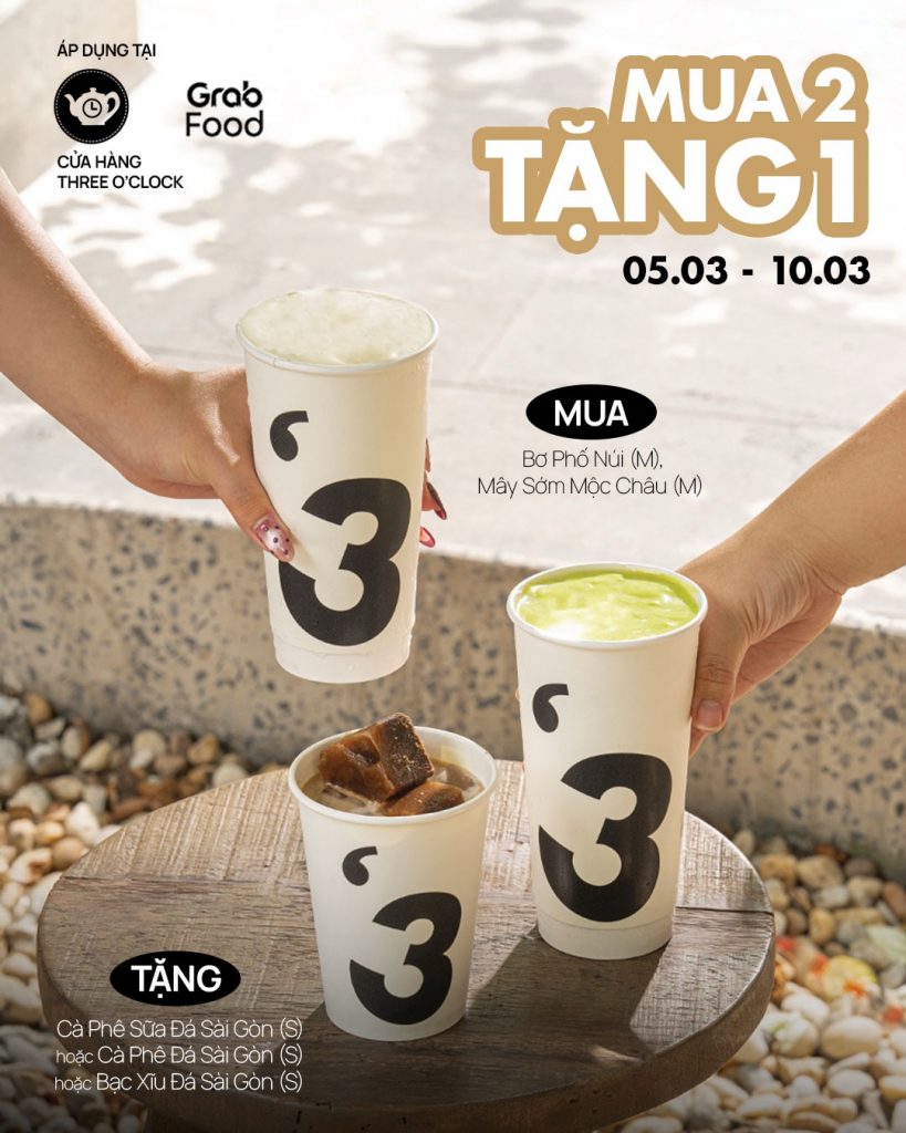 Chương trình áp dụng khi mua hàng trực tiếp ở cửa hàng hoặc đặt qua Grab Food tại THREE 3 miền 🤟